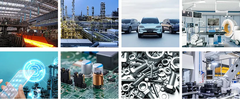 Біз қазір болат, химия, автомобиль, медицина, байланыс, электроника, аппараттық құрал, машина жасау, жаңа энергия, тамақ және сусындар, жиһаз және орау сияқты әртүрлі салалардағы клиенттермен кең серіктестік орнаттық.