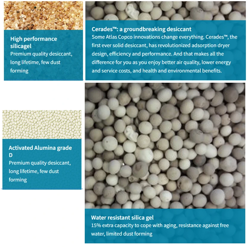 Қысымның шық нүктесіне байланысты құрғатқыштар алюминий тотығы, силикагель немесе молекулалық елеуіш материалдарынан жасалуы мүмкін. Ең төменгі қысымның шық нүктесі -70℃ жетуі мүмкін.
