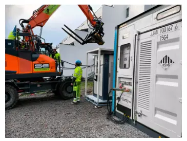 Atlas Copco жылдам зарядтау құрылғысы электрлік экскаваторды тамақтандыру үшін ZBC контейнерлік энергияны сақтау жүйесімен жұмыс істейді.