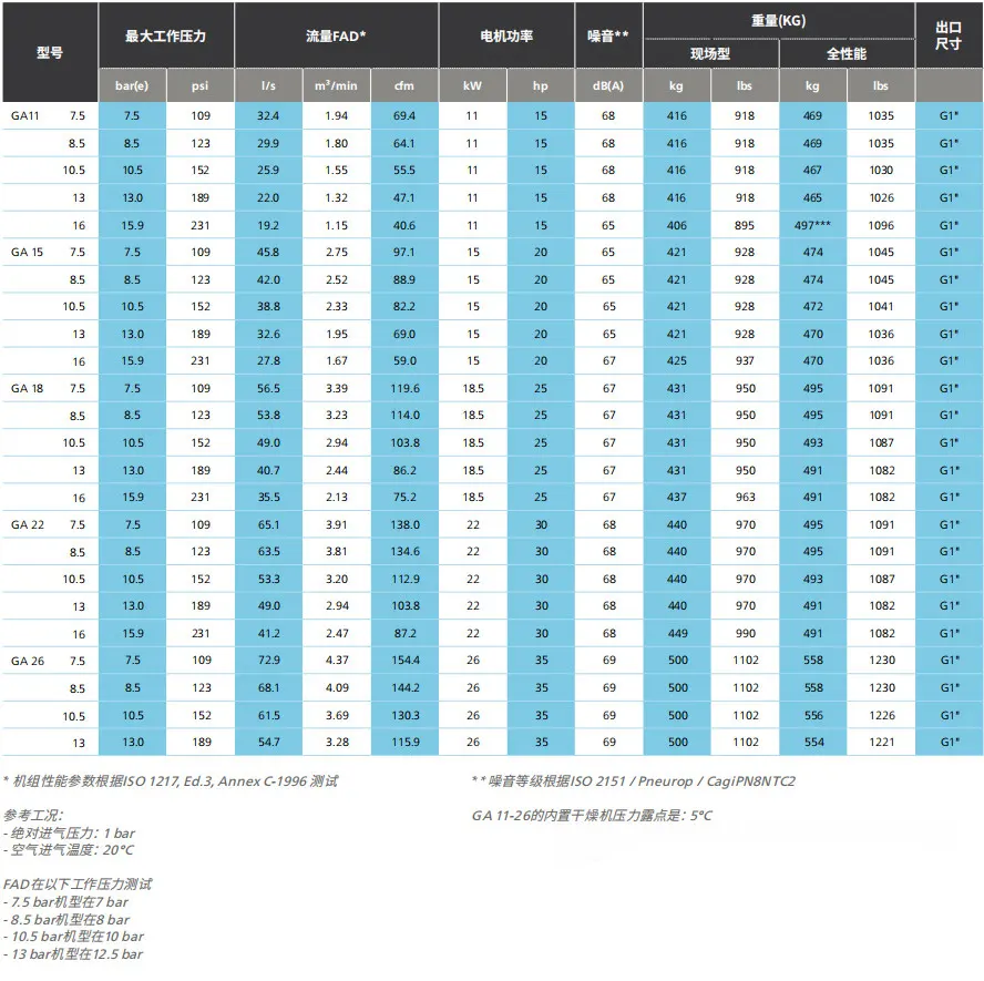 ·GA11-26 жаңа роторды және IE2/IE3 жоғары тиімді қозғалтқышты қабылдайды, ол берік және тиімді.
