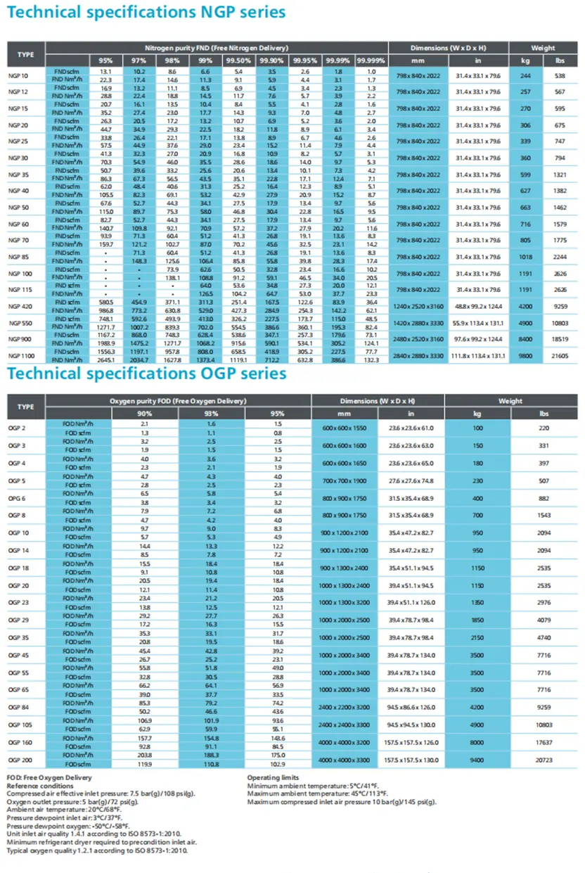 NGP қысымды бұралмалы адсорбциялық азот генераторы сапа талаптарыңызды қанағаттандыру үшін 95%-дан 99%-ға дейін азот тазалығын ұсынады.