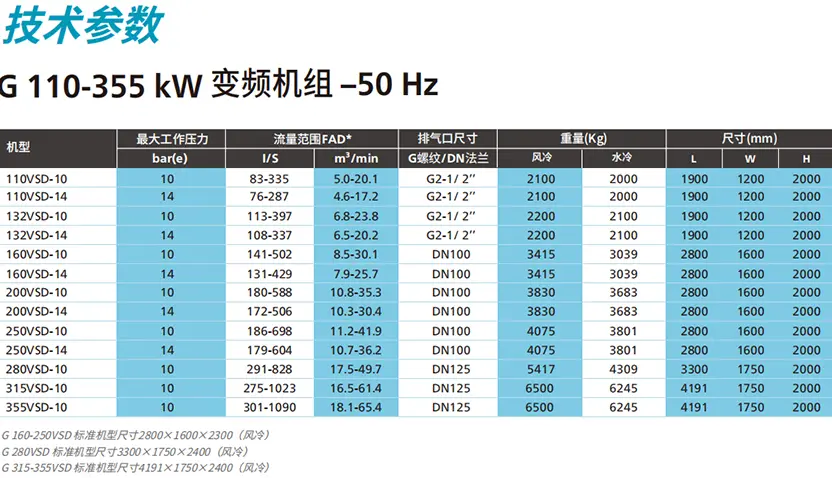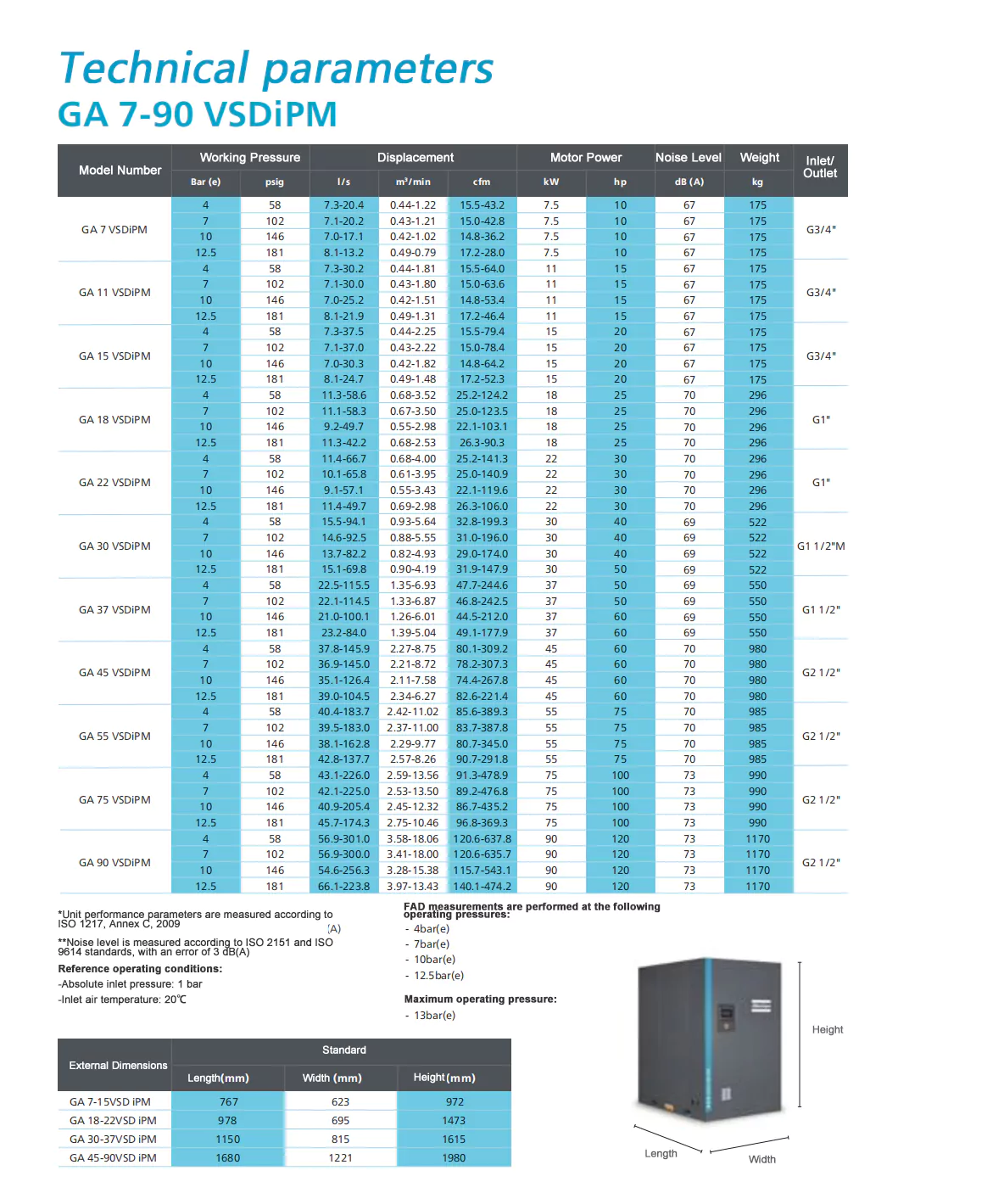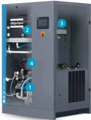Atlas компаниясының VSD айнымалы жиілікті ауа компрессоры үздіксіз жұмыс істеу үшін арнайы жасалған. Қозғалтқыш жүйесі тамаша май салқындату әсеріне қол жеткізе алатын тиімді тұрақты магнитті қозғалтқышты қабылдайды. VSD технологиясы энергияны 35%-ға дейін үнемдеуге қол жеткізе алады, ал оның азырақ ізі орнату икемділігін қамтамасыз етеді.