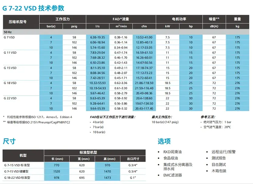 G7-22 VSD айнымалы жылдамдықты жетек технологиясы сіздің ауа сұранысыңызға сәйкес компрессордың қозғалтқыш жылдамдығын қамтамасыз етеді.