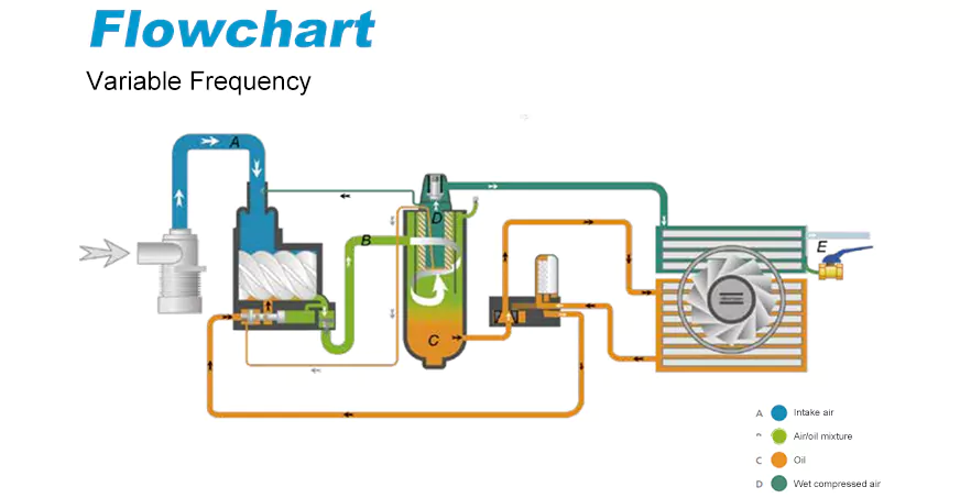 VSD айнымалы жиілікті ауа компрессоры үздіксіз жұмыс істеу үшін арнайы жасалған.