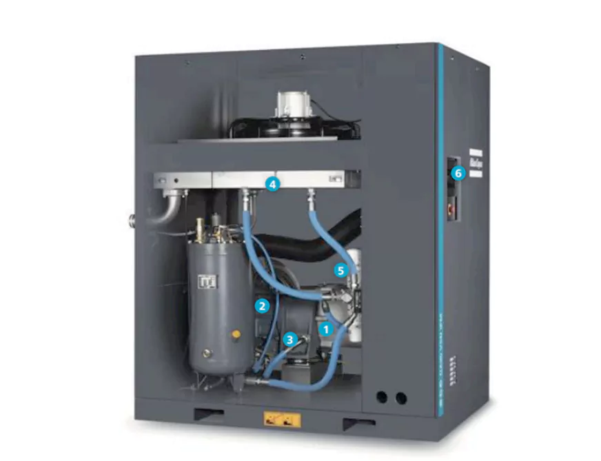 5. Барлық Atlas Copco G(L)VSD компрессорлары EMC сынағы мен сертификаттауынан өтті. Компрессордың жұмысы сыртқы құрылғыларға әсер етпейді және керісінше.